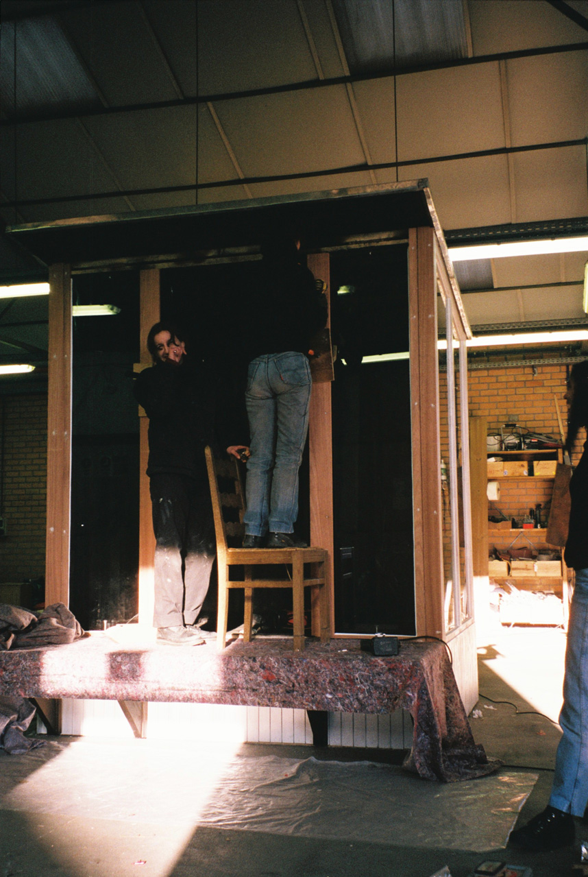 Since the construction of the cabin was made possible through a crowdfunding, we are still grateful for the financial support of Aaron Daem, Alexandros Sourbis, Amber Meulenijzer, Bert Huyge, Bert Van Den Abeele, Carine De Baere, Cecilia Vanneste, Chang Wanling, Charlotte Symoens, Christiane Wuytack, Christine Van Conkelberge, Dehaes, Didier Deschrijver, Dylan Belgrado, Els Wuyts, Emma Van Wassenhove, Eppo, Eva Claus, Eva Deschryver, Ewaut Van Wassenhove, Fien Boone, Floris Hoorelbeke, Frans Robbert, Gustave Demoen, Helena Van Wassenhove, Hollevoet-Geldhof Marc & K., Ilse Roosens, Ines Bodlovic, Inge Ketelers, Ingrid Van De Wiele, Ireen Boone, Ivan Van Wassenhove, Janne Gistelinck, Jonas Haerens, Judith Herman, Karel Vandeweghe, Karin Delbaere, Kathleen Huys, Katrien Creve, Leonie Boone, Liesbeth Feys, Lieve Boone, Lucca Janssen, Lukas De Clerck, Manon Donckier, De Donceel, Marc Mallezie, Marijke Snauwaert, Marleen Wynants, Michelle Vosters, Michiel Claus, Mirthe Demaerel, Mortier Eddy, Myriam Boone, Neyt-Vermeulen, Nick Dillen, Gert-Jan Reeskens, Niels Uitterhaegen, Niels Vantomme, O.666, Olivier Verniers, Paule Josephe, Roel Kerkhofs, STROOM, Sander Misplon, Siebert Mispelon, Stefanie Van Rompaey, Stilbé Schroeder, Van Braeckel, Van De Voorde, Victor Verhelst, Wim Hamiax, Wout Allegaert.The cabin was designed together with Stephen Van Elslander, the crowdfunding designed together with Kristina-Sedlerova Villanen and Emma Joly and build together with Dries Peeters, Stilbé Schroeder, Emma Joly and Nana Esi. |