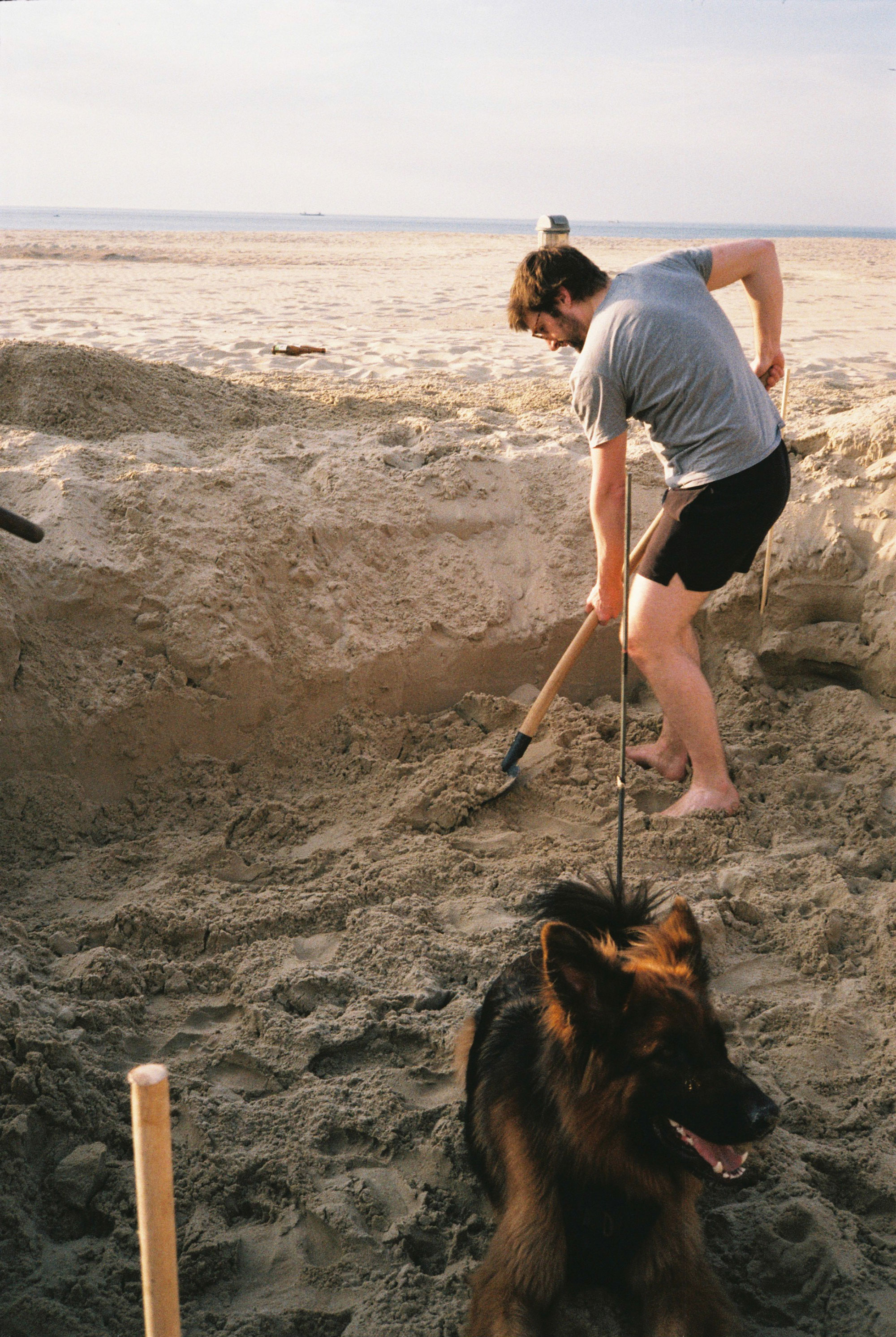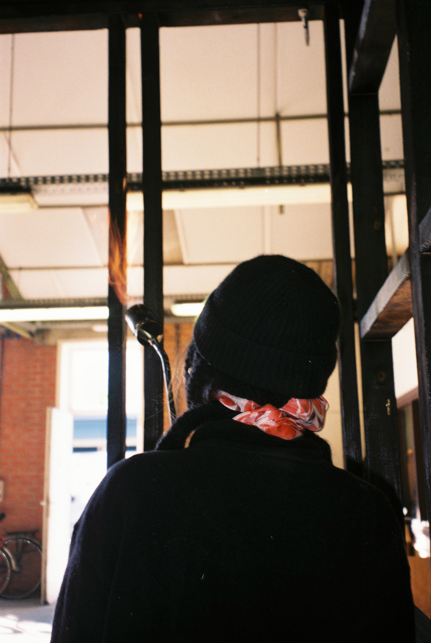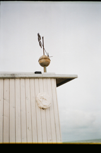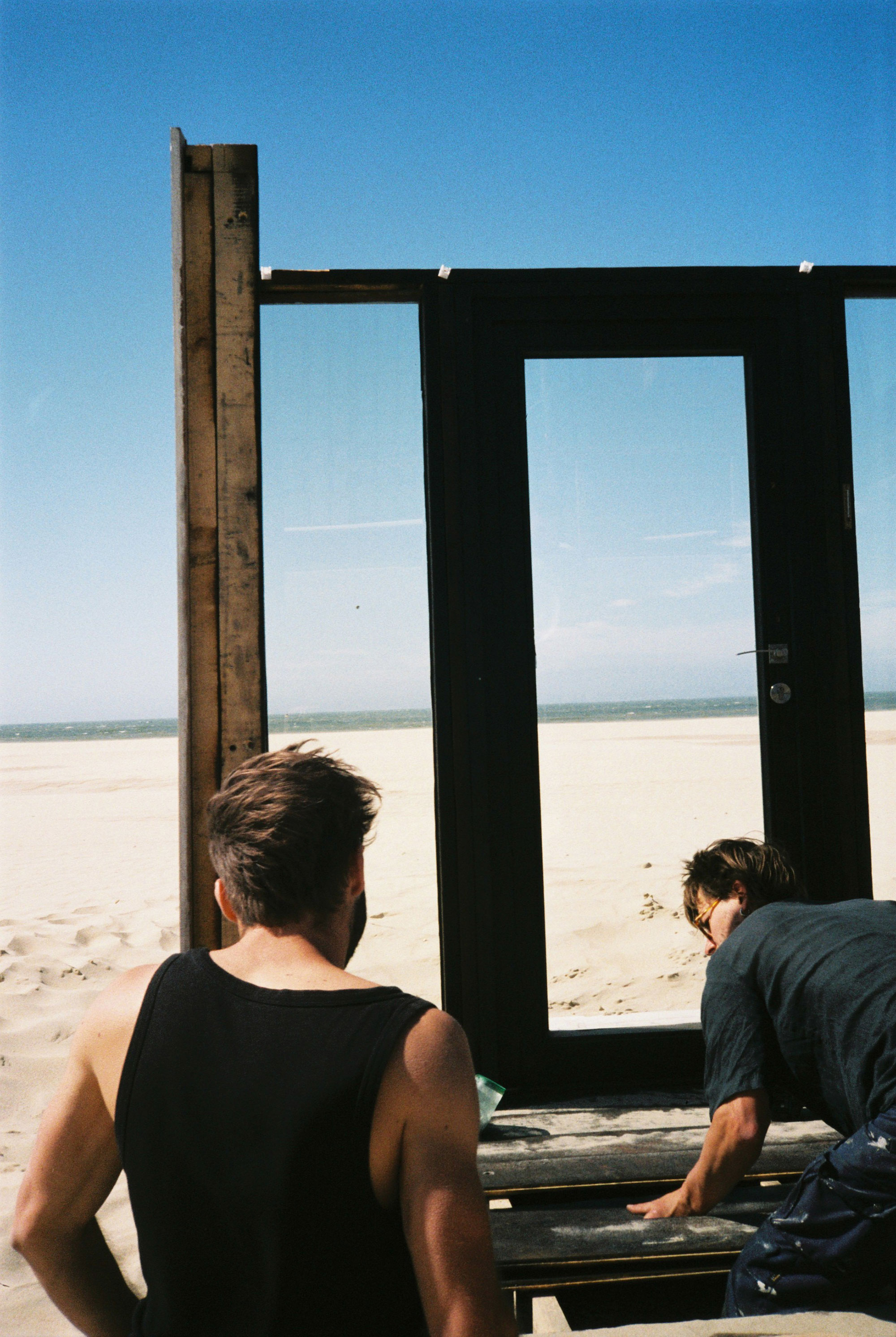 In April 2021 the cabin went for the first time out into the open. We got a permit from the city and carried the cabin onto the beach of Ostend. It was placed facing the North Sea and stayed there until the beginning of Autumn. As the season progressed, multiple artists added a work to the space and structure. Paule Josephe made marble dyed curtains for the cabin with the title Sun of the Metal Ox. Dries Peeters made the cabin's door handle from oak wood, Door de ruisende golven uw hoofd leeg gewassen. Rest nog uw mondaine leven in uw broekzak te passen. Chloé Arrouy added Le Gardien, a weathervane made of a stainless steel boat float, a brass wartime socket and other items found by Chloé in Normandy and a small miniature dog's head on the very top. And the last days of Summer, days became shorter and more cold, the cabin became a shelter from the wind and rain. Jot Fau added Rien à dire - Tout à panser, a woolen blanket to keep one warm. This first year was a period of experimentation with the different uses and possibilities. A lot of try-outs took place, often in a partly-public atmosphere. Encounters with casual passers-by led to more collaborations the same year and the years following. |