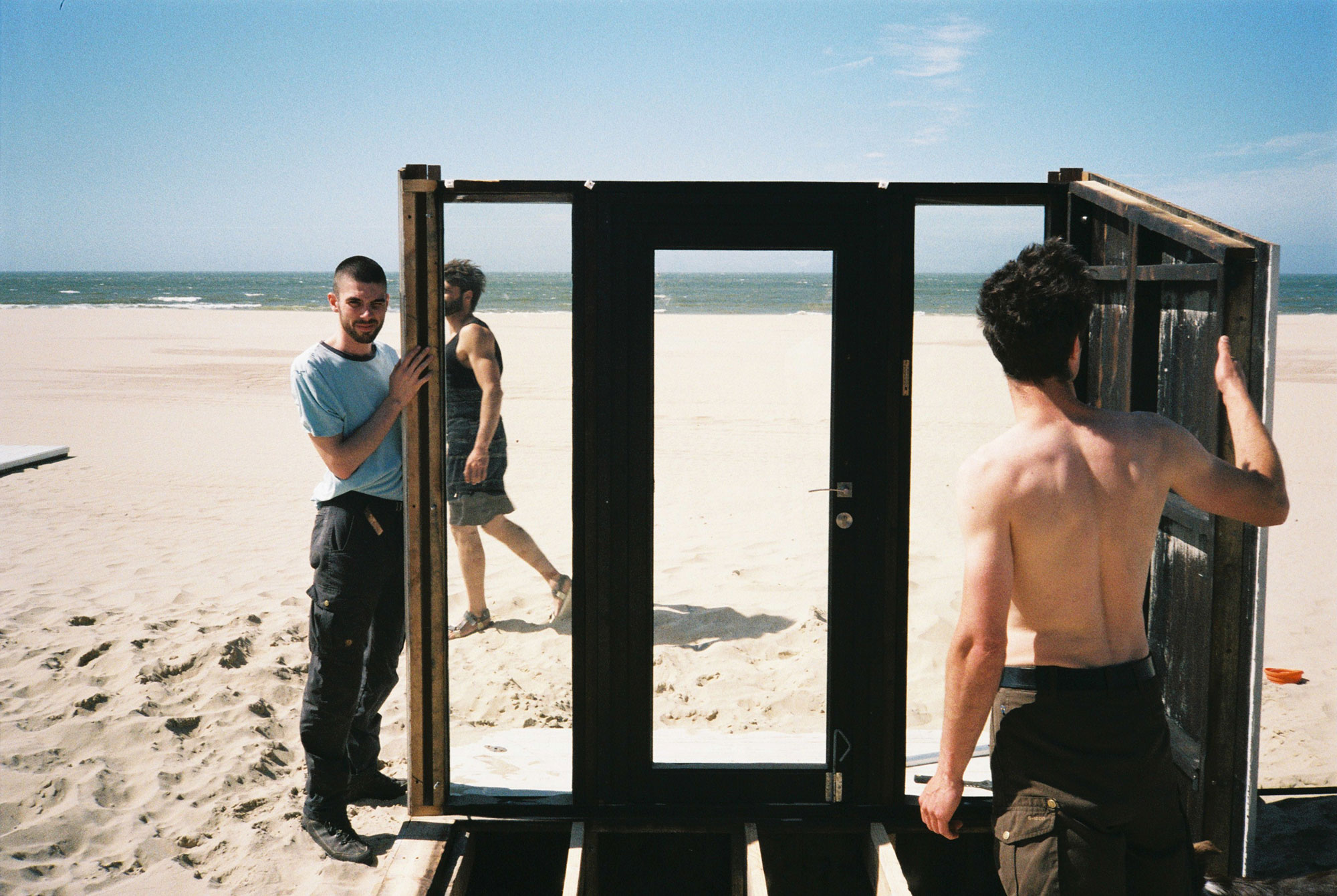 In October 2020 the first sketches were made for the cabin together with Stephen Van Elslander. As the project of the cabin became concrete and new people (Stilbé Schroeder, Emma Joly and Kristina-Sedlerova Villanen) joined from different horizons, the energy started to boil and a crowdfunding was launched calling for financial donations from Pleasure Island supporters. The cabin was constructed in February 2021 with the help of Dries Peeters, Stilbé Schroeder, Emma Joly and Nana Esi. The holding structure is executed from recycled pine wood and the exterior from sustainable pine thermowood with a 100% natural stain. The cabin lives and evolves throughout the changeable seasonal environment challenged by winds, rain and various publics. The structure of the pavilion is designed to be sustainable with the possibility of reassembling it in different locations. It is a playful research concerning the position and influence of artistic endeavors in and around the community — a suggestion to how a beach cabin can bend, architecturally and functionally. |