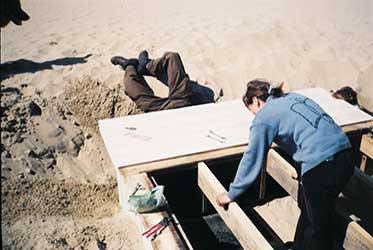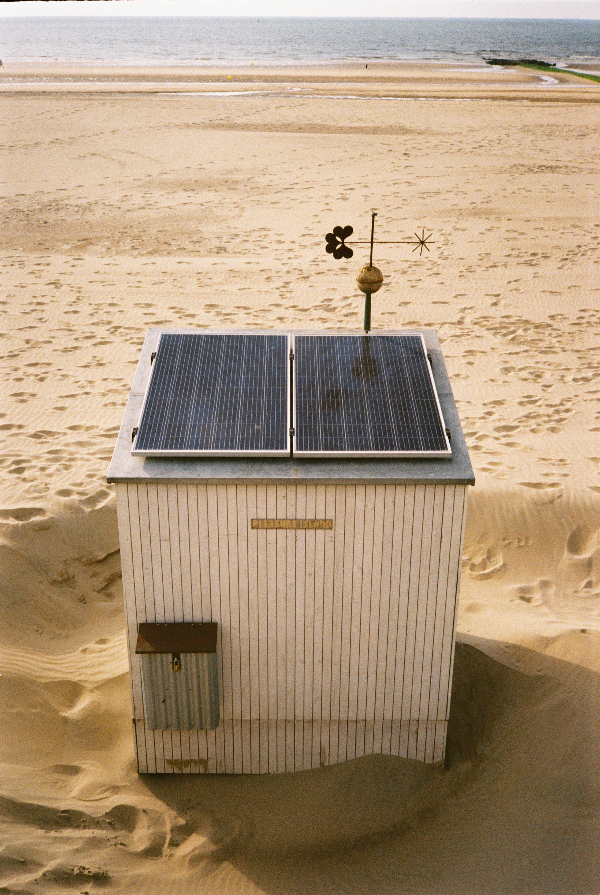 The second year on beach of Ostend was preceded by an open call, a selection of propositions resulted in a series of events and a residency. Discovering ways of giving away the space to others, numerous events took place each with their own unique atmosphere. Two more permanent works were added to the cabin. Simon Masschelein added a rain gutter on the back-wall and Jan Vandeplancke a broom-wistle. |